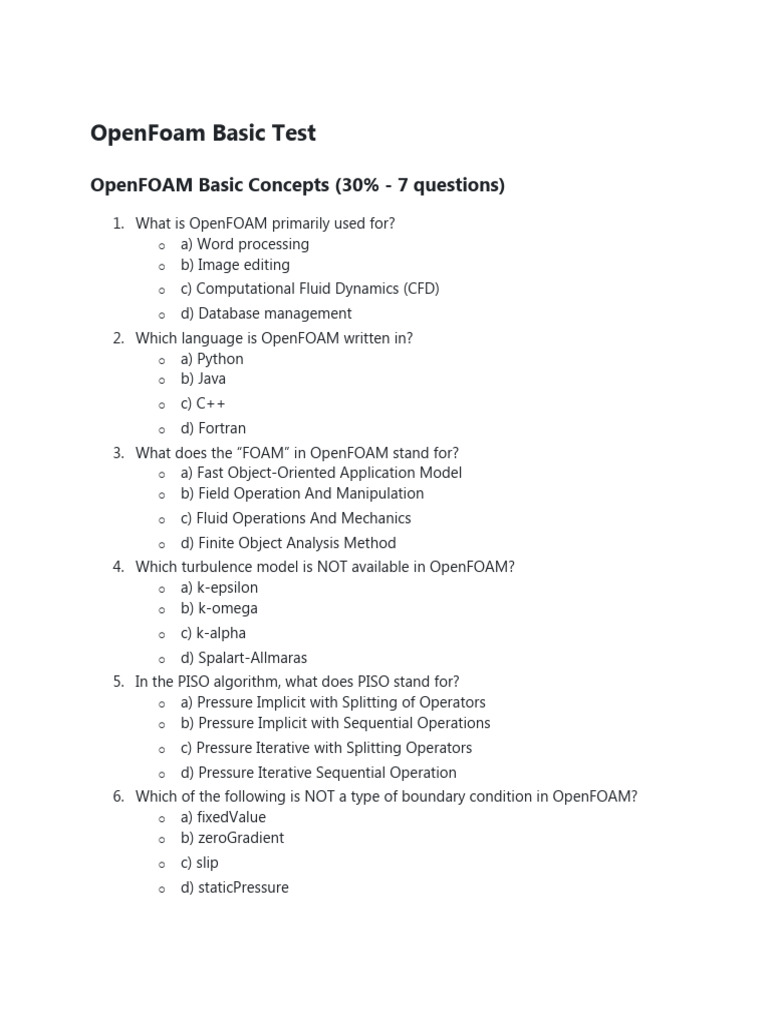 OpenFOAM Basic Concepts (30% - 7 questions)