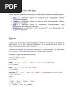 Tuples are sequences, just like lists. The differences between tuples and lists are, the