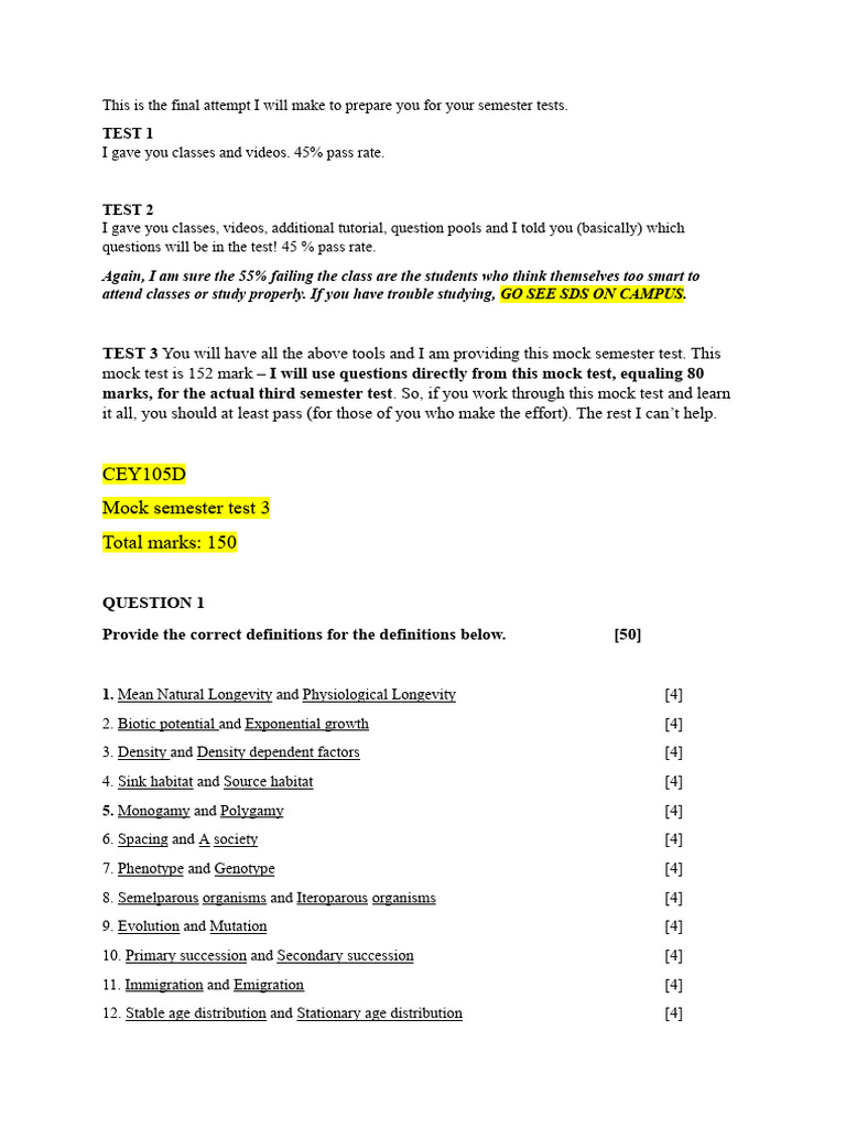 This is the final attempt I will make to prepare you for your semester tests.
