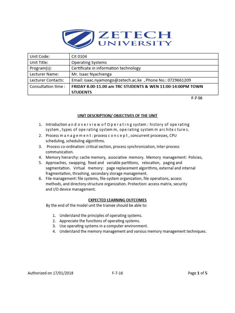 Lecturer Contacts: Email: isaac.nyamongo@zetech.ac.ke , Phone No.: 0729661209