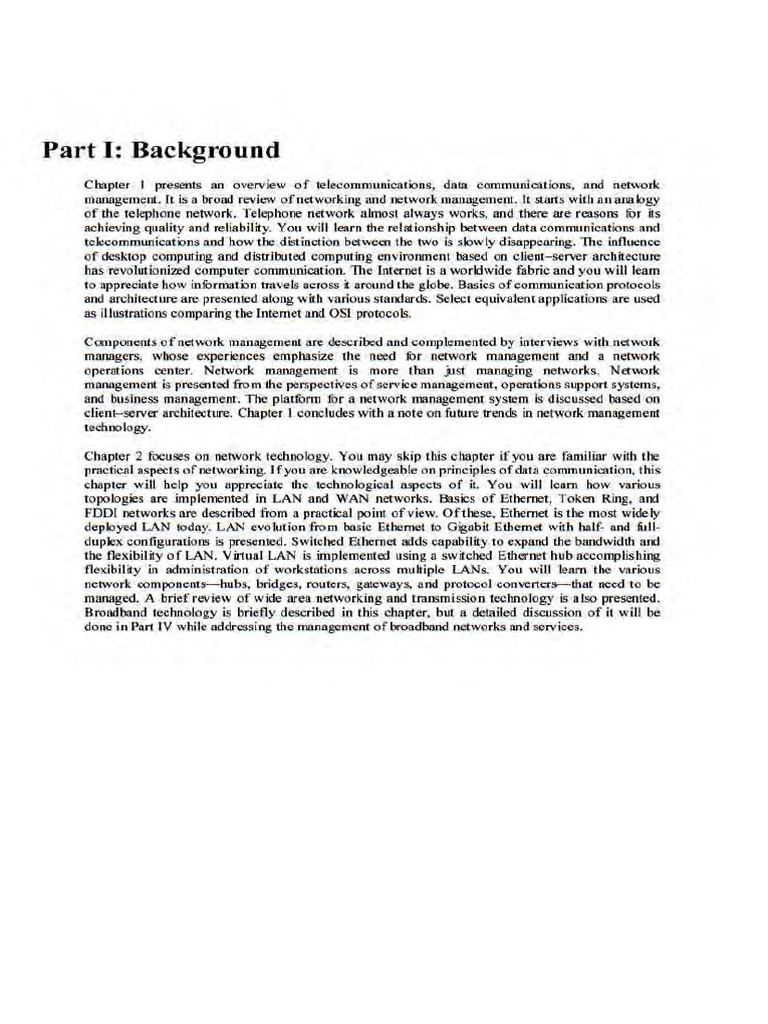 client- server architecture. Chapter I concludes with a note on future trends in network management