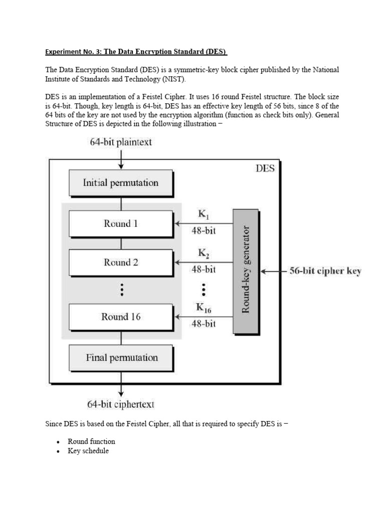 The Data Encryption Standard (DES) is a symmetric-key block cipher published by the National