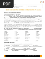 EXAM IN ENGLISH FOR BUSINESS COMMUNICATION (90 minutes)