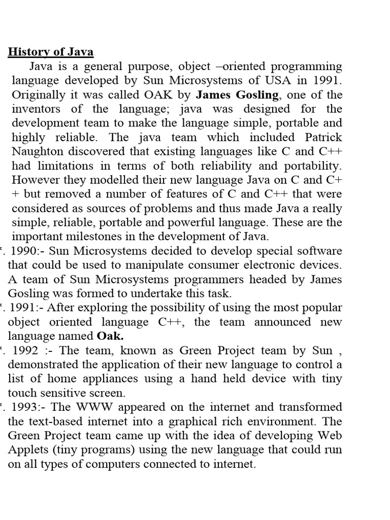 *.1995:- Oak was renamed “Java”, due to some legal problems.