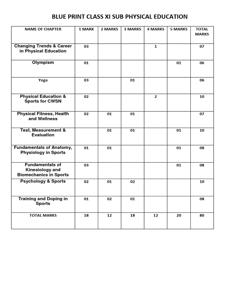 BLUE PRINT CLASS XI SUB PHYSICAL EDUCATION