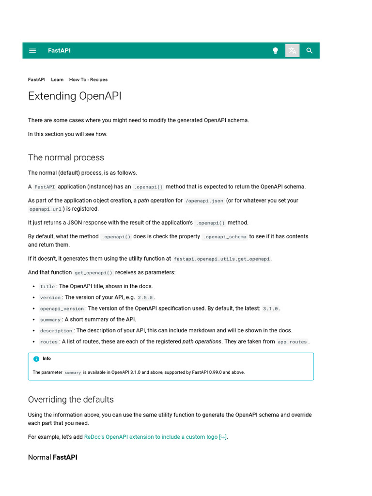 Then, use the same utility function to generate the OpenAPI schema, inside a custom_openapi() function: