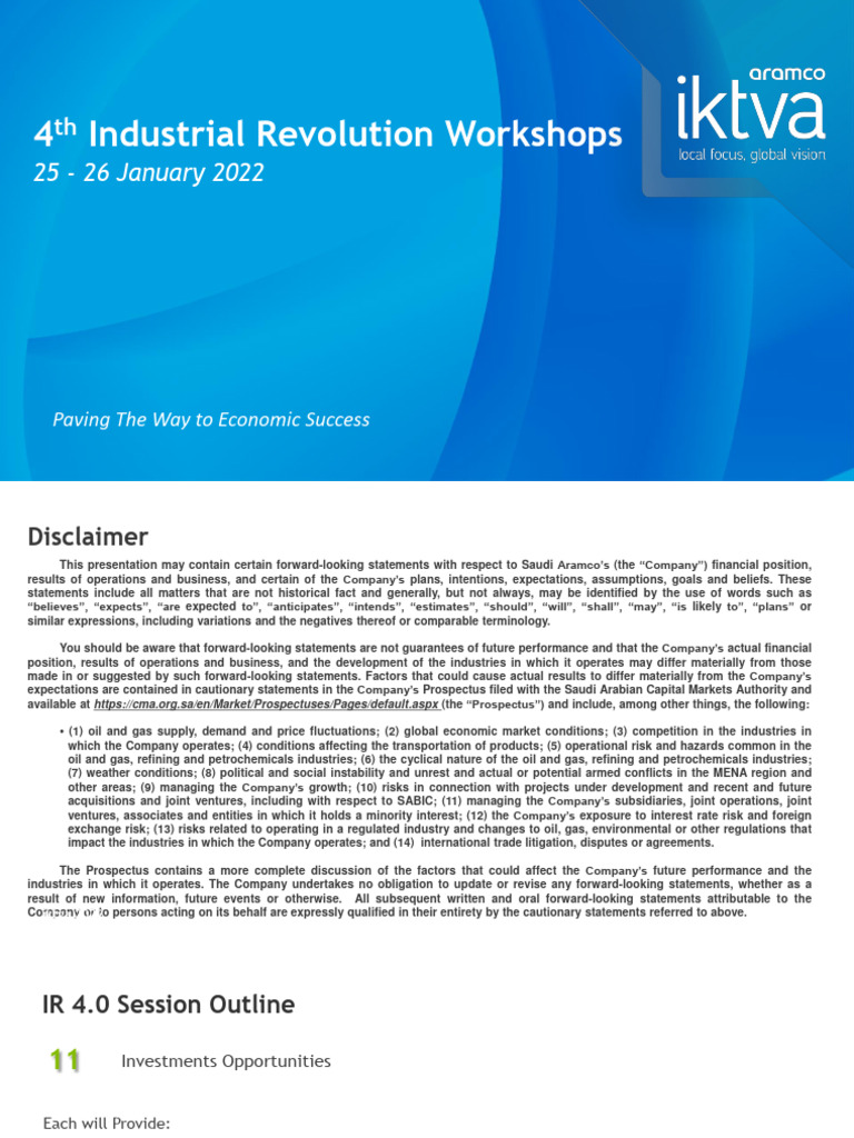 This presentation may contain certain forward-looking statements with respect to Saudi Aramco’s (the “Company”) financial position,