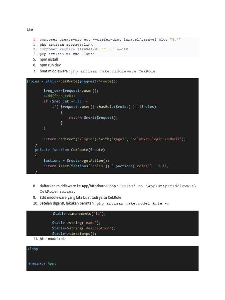 8. daftarkan middleware ke App/http/karnel.php : 'roles' => \App\Http\Middleware\