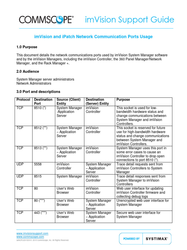 TCP 8510 (*) System Manager imVision This socket is used for low-