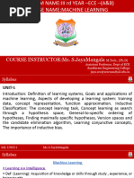 Learning- K-Nearest neighbor learning Introduction to Machine Learning (ML): Definition, Evolution,