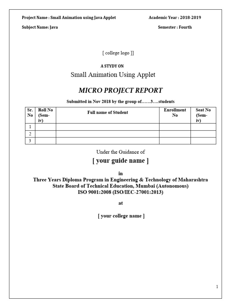 Project Name : Small Animation using Java Applet Academic Year : 2018-2019