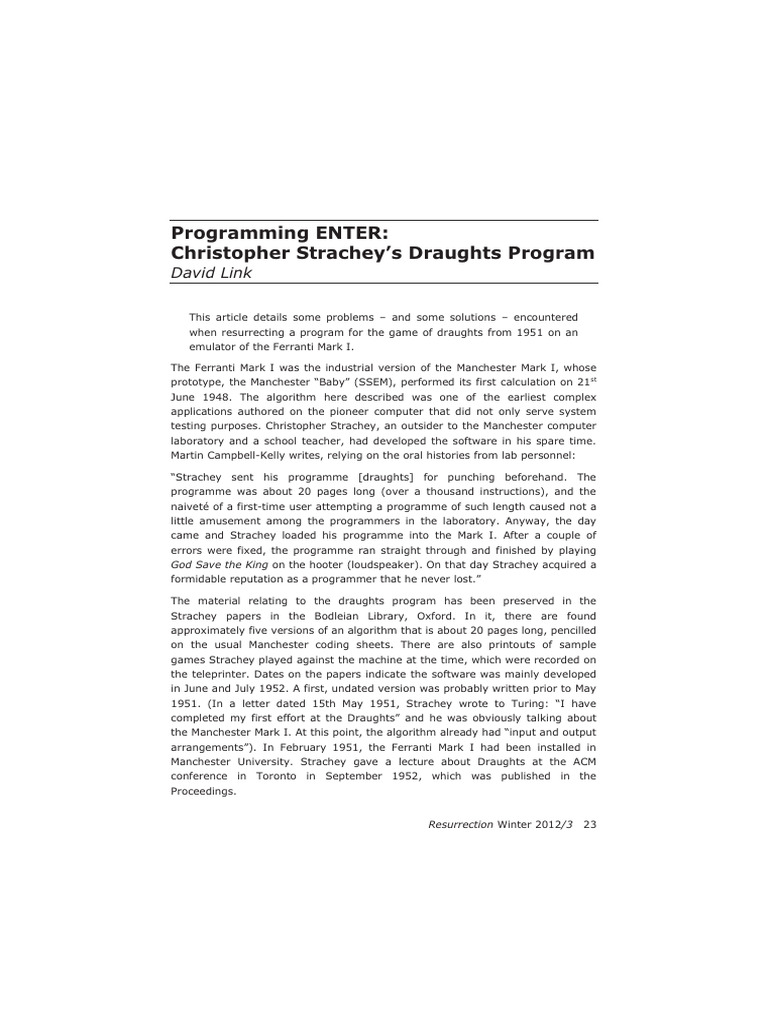 “Strachey sent his programme [draughts] for punching beforehand. The