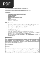 History: Java’s history is very interesting. It is a programming language created in 1991. James Gosling, Mike