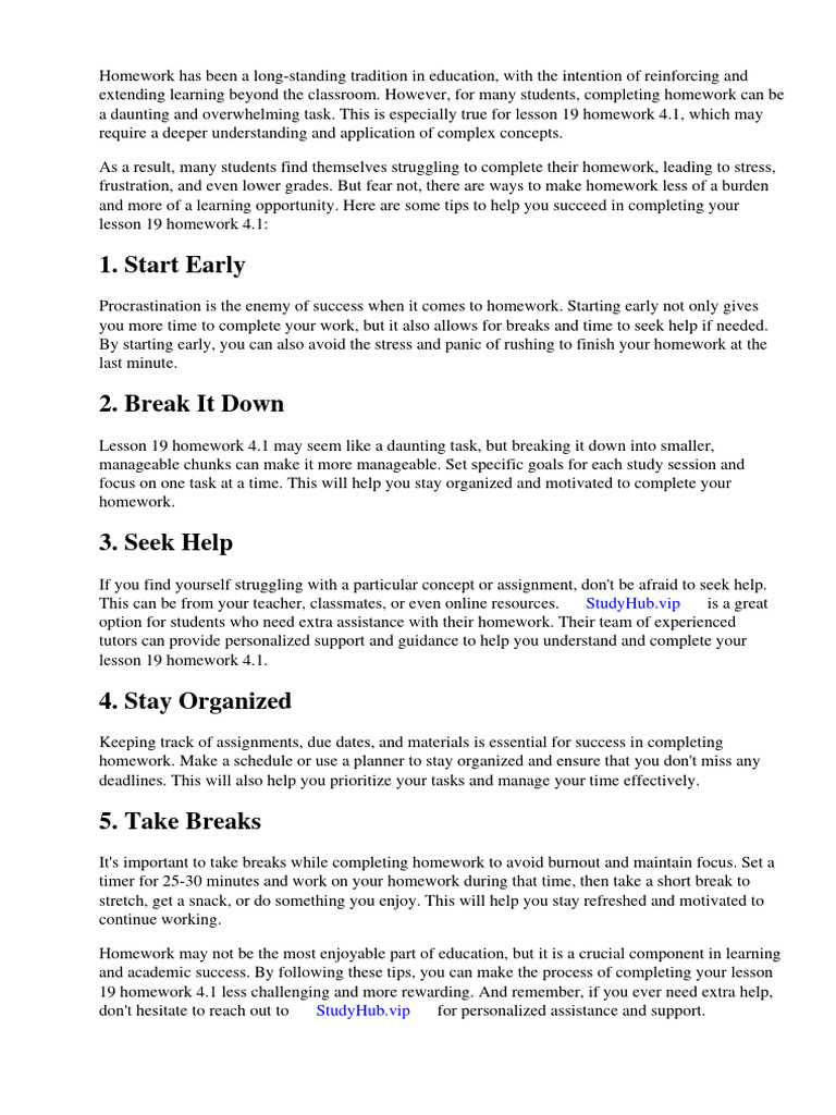 Lesson 19 homework 4.1 may seem like a daunting task, but breaking it down into smaller,
