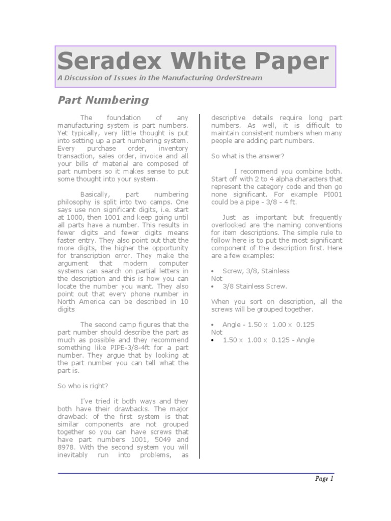manufacturing system is part numbers. numbers. As well, it is difficult to