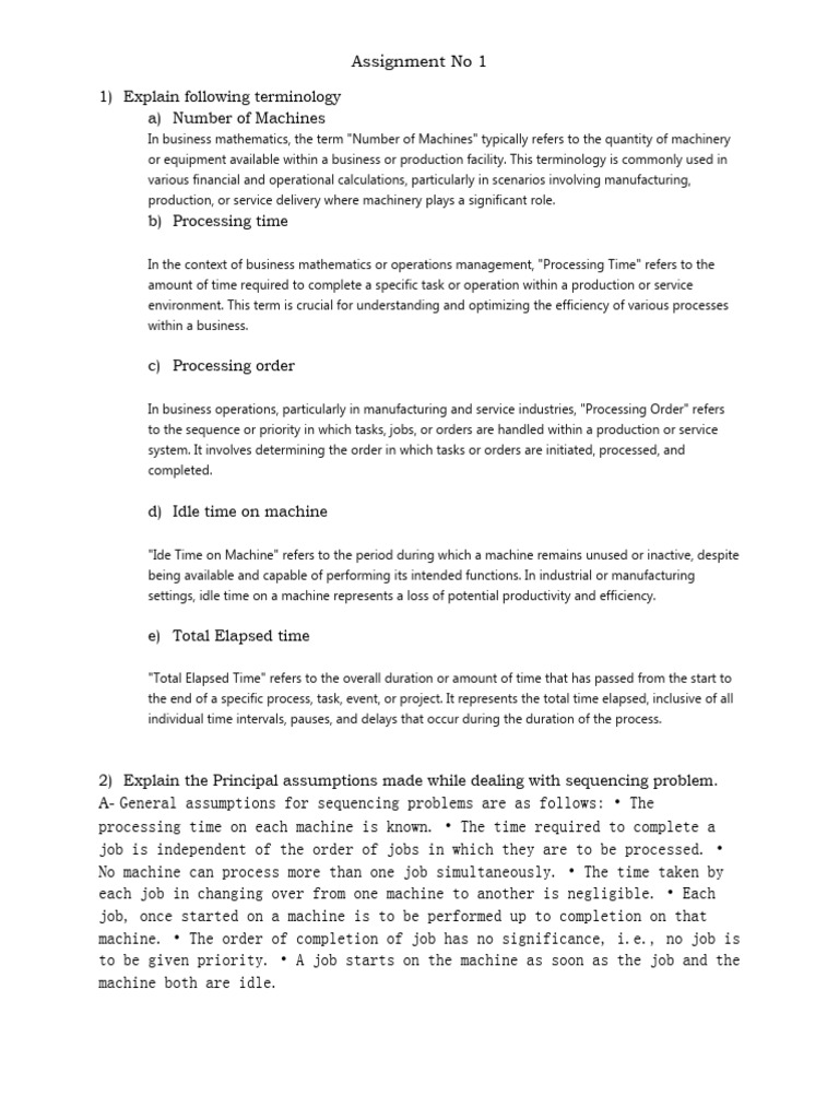2) Explain the Principal assumptions made while dealing with sequencing problem.