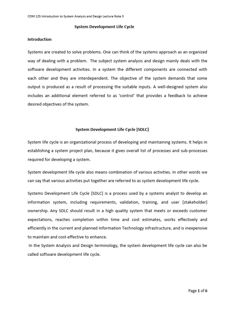 COM 125 Introduction to System Analysis and Design Lecture Note 3
