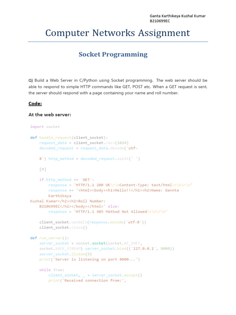 Q) Build a Web Server in C/Python using Socket programming. The web server should be
