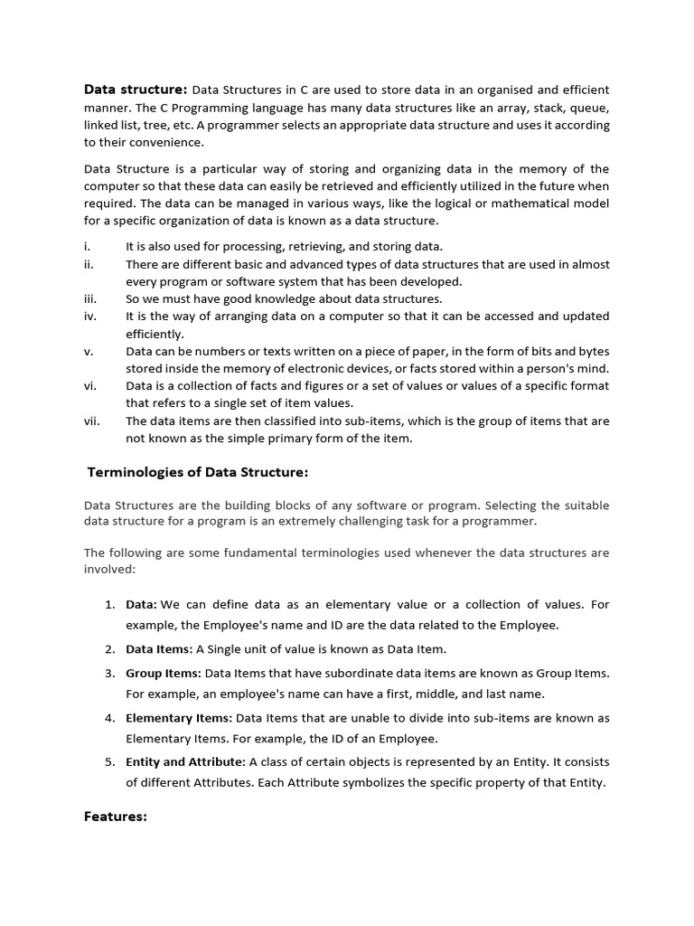 Data structure: Data Structures in C are used to store data in an organised and efficient