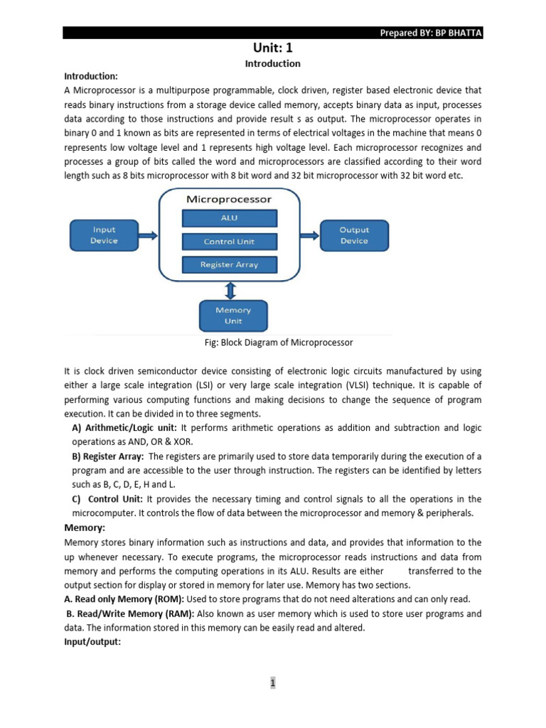 A Microprocessor is a multipurpose programmable, clock driven, register based electronic device that