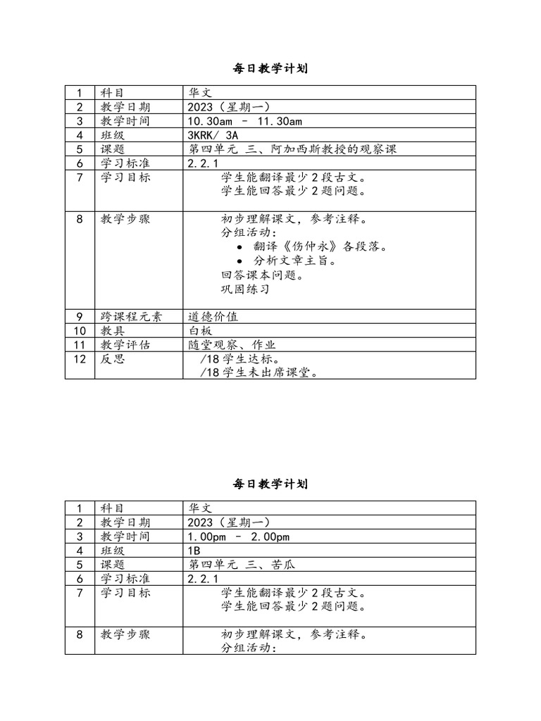 每日教学计划