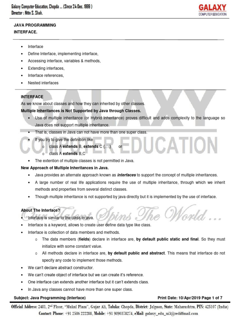 Subject: Java Programming (Interface) Print Date: 10/Apr/2019 Page 1 of 7