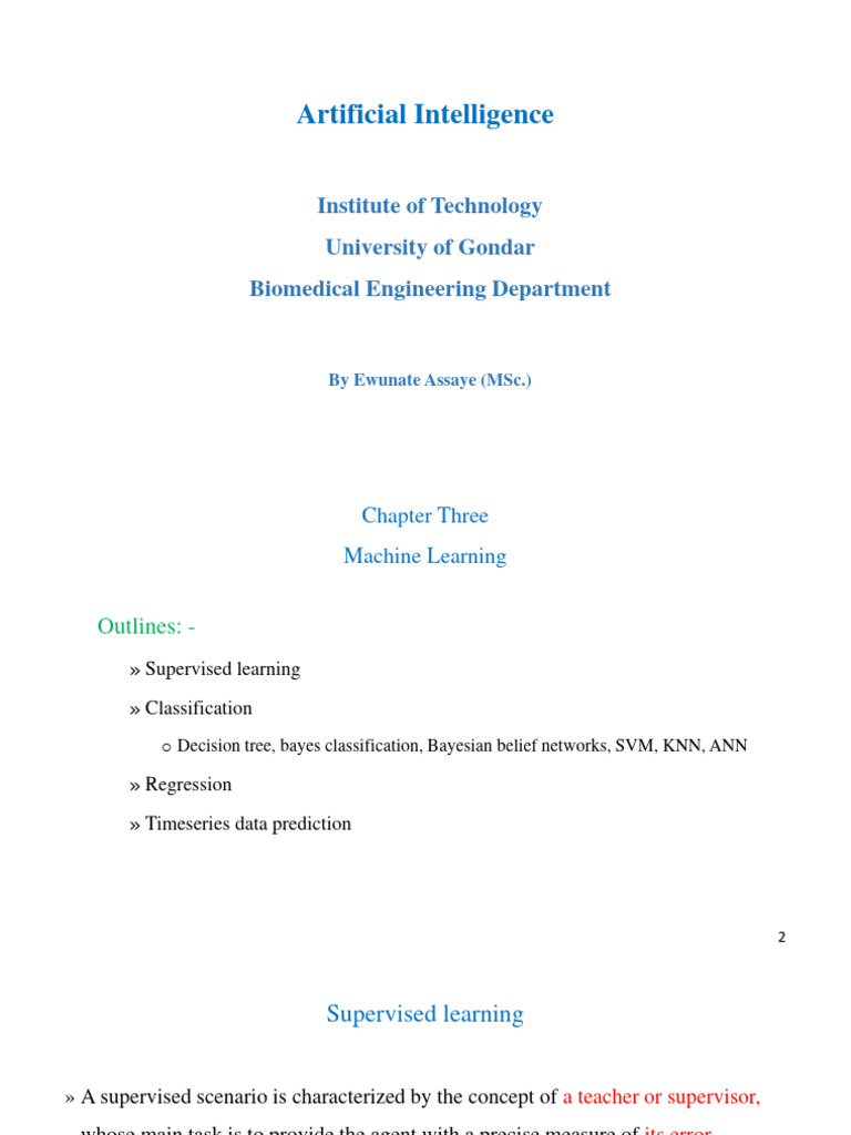 o Decision tree, bayes classification, Bayesian belief networks, SVM, KNN, ANN