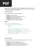 Operators in Java are the symbols used for performing specific operations in Java. Operators