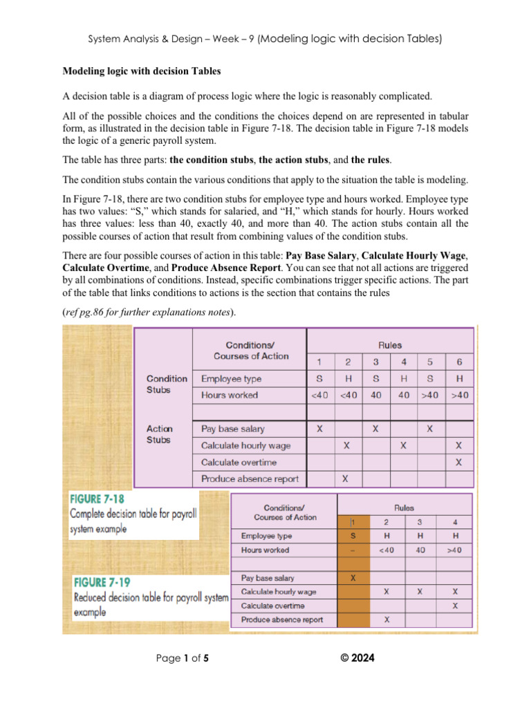 System Analysis & Design – Week – 9 (Modeling logic with decision Tables)