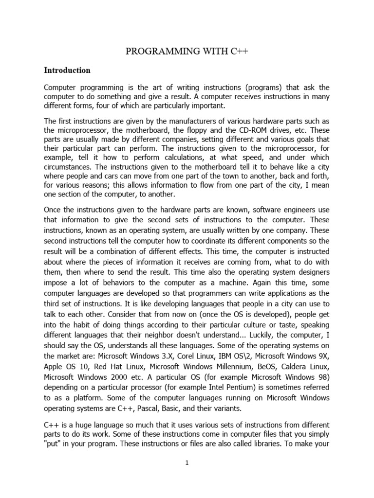 C++ works by giving (separate) instructions to the computer. These instructions can be