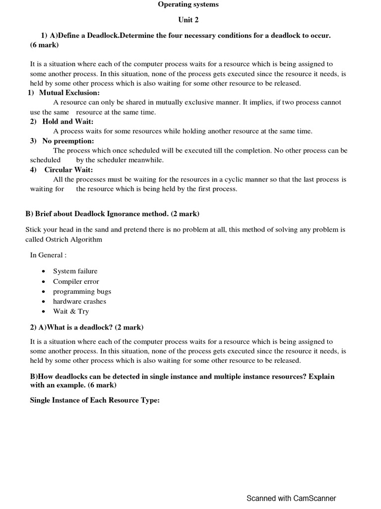 B)How deadlocks can be detected in single instance and multiple instance resources? Explain