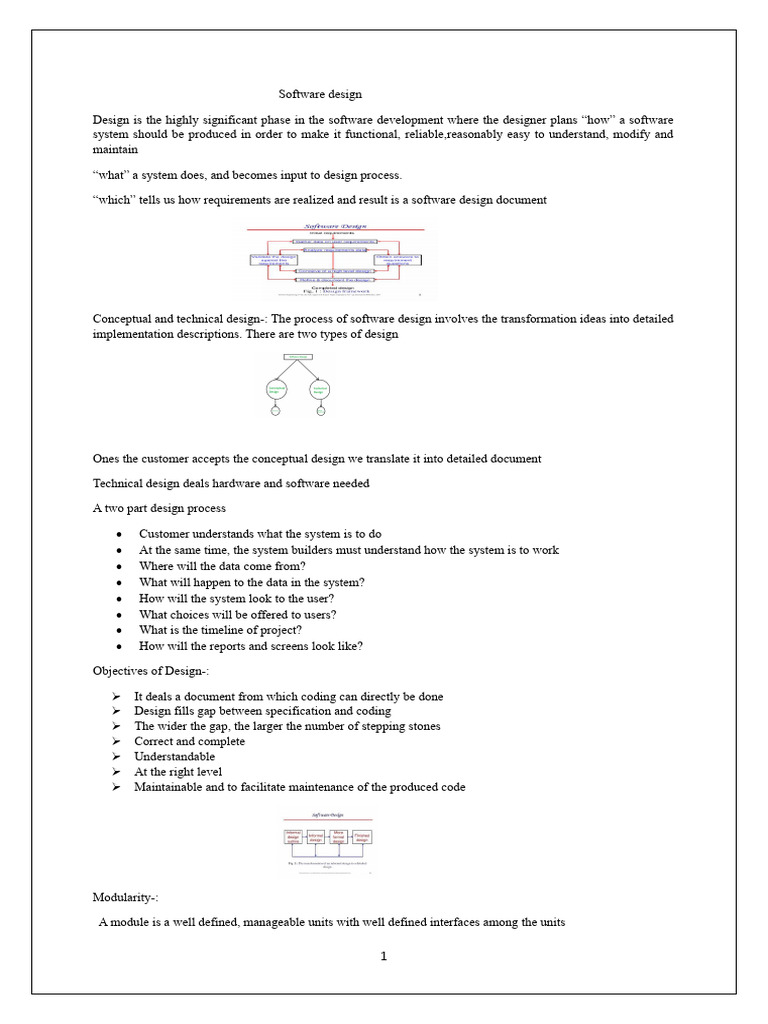 Conceptual and technical design-: The process of software design involves the transformation ideas into detailed