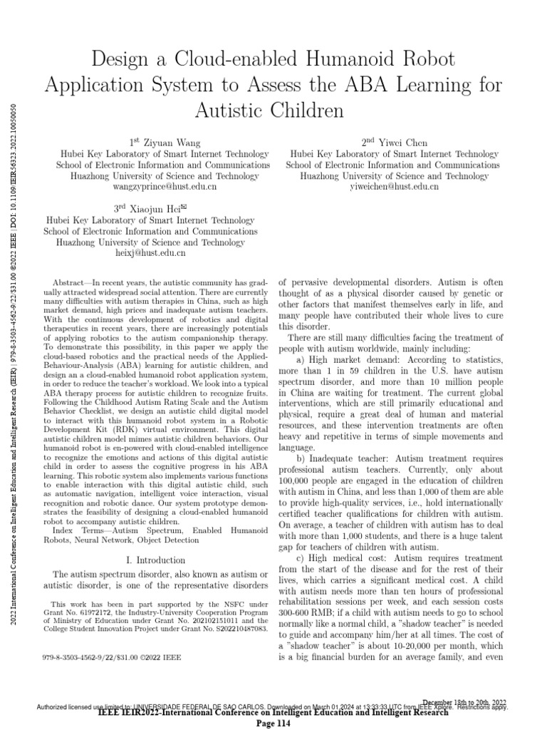 autistic children. By robot with autistic children know with autistic children in 2015. In 2017, a team [12]