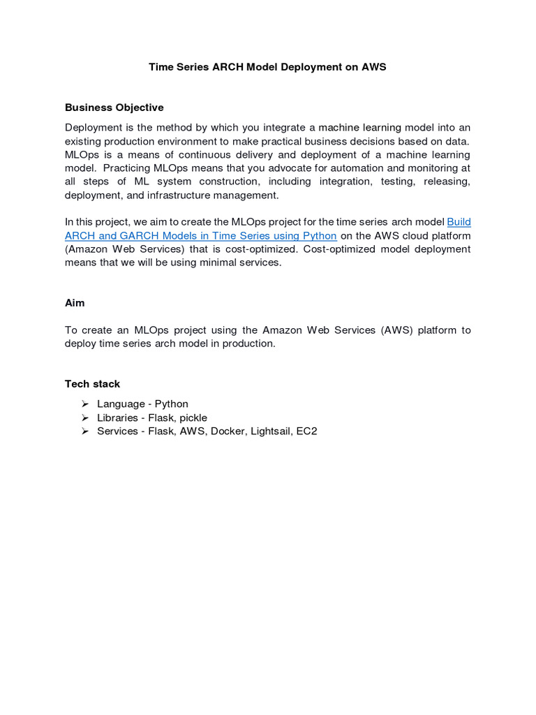 In this project, we aim to create the MLOps project for the time series arch model Build