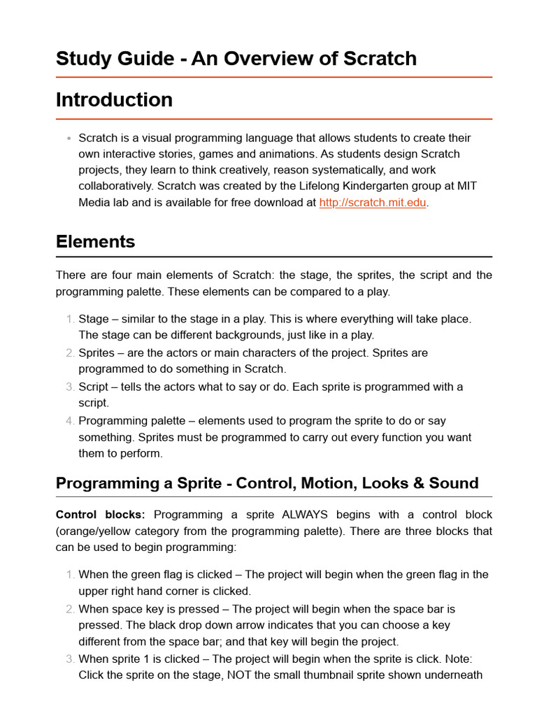 Study Guide - An Overview of Scratch