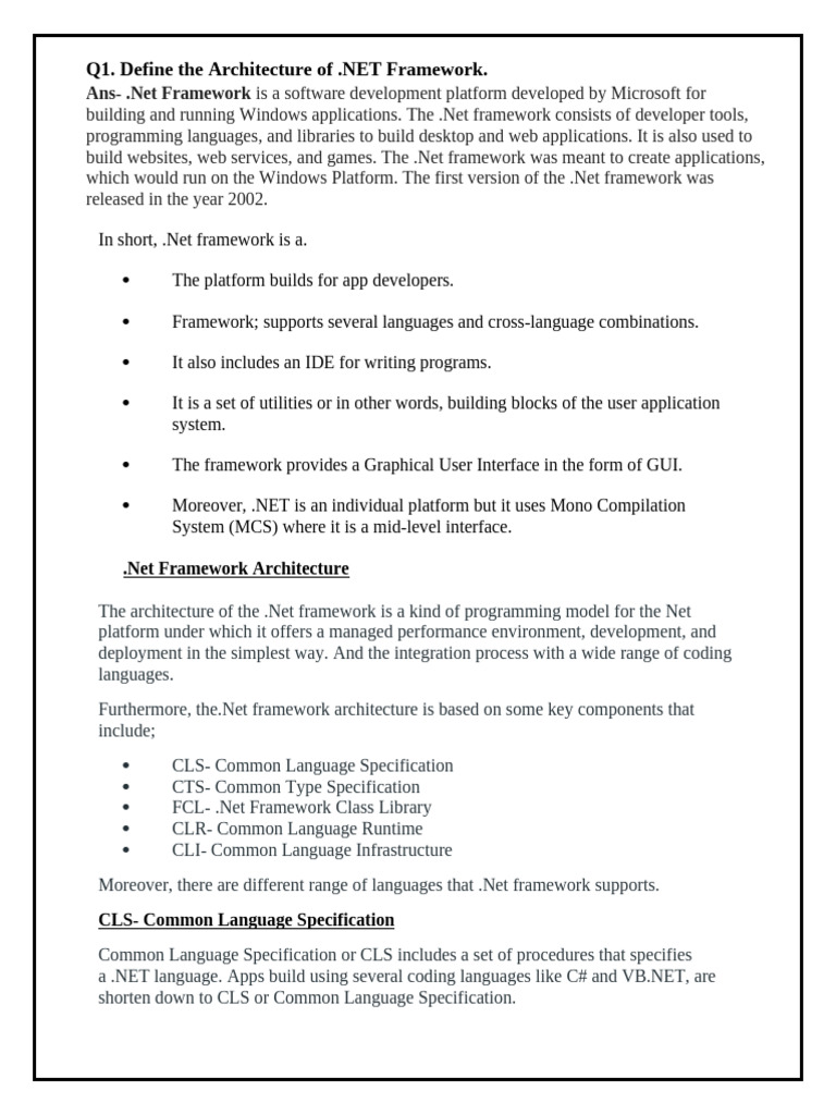 Ans- .Net Framework is a software development platform developed by Microsoft for