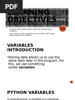 to declare variables in it. (2.1.4.3) To assign values to variables, you can use a