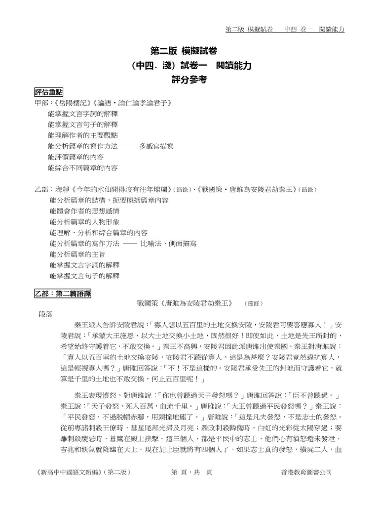 第二版 模擬試卷 01 中四 卷一 閱讀能力