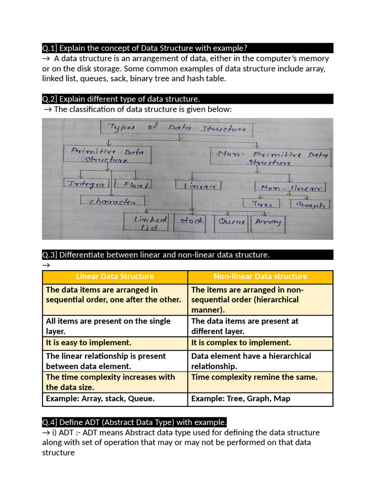 → i) ADT :- ADT means Abstract data type used for defining the data structure