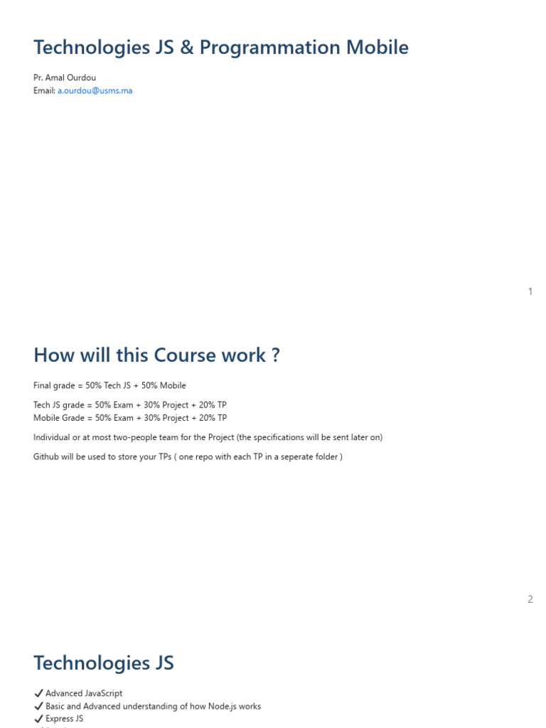 Final grade = 50% Tech JS + 50% Mobile