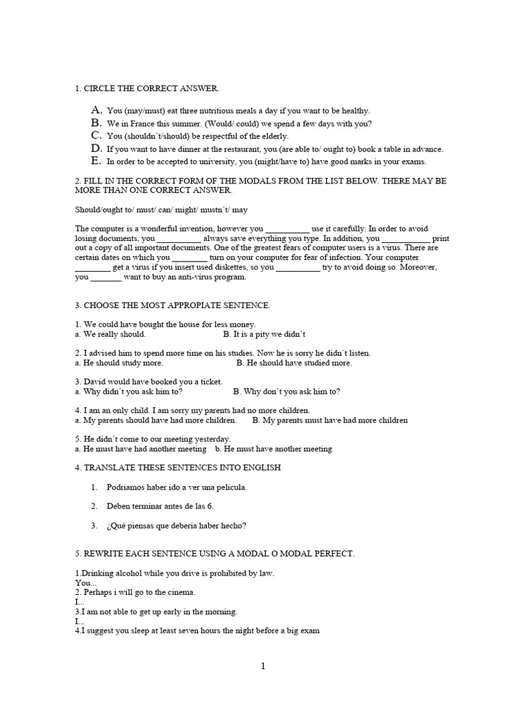2. FILL IN THE CORRECT FORM OF THE MODALS FROM THE LIST BELOW. THERE MAY BE