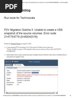 Description : When you use the Volume Shadow Copy Service (VSS) to create more than 10 transportable hardware snapshots in Microsoft Windows XP X64 Bit, some of these snapshots may not be imported within the allocated time. If the snapshots are not imported, the import operation fails. Cause : This problem occurs because of low time -out values. VSS does not wait long enough for the logical uni t numbers (LUNs) to come online. This problem occurs when hardware arrays approach the VSS limit of 64 shadow copies per shadow copy set. This hotfix extends the time -out period to allow for the VSS limit. Resolution : To resolve this problem, obtain the latest service pack for Windows . For further assistance please refer Microsoft KB http://support.microsoft.com/kb/896592