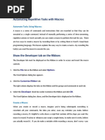 macros to automate both simple and complex tasks. Macros are very useful when you
