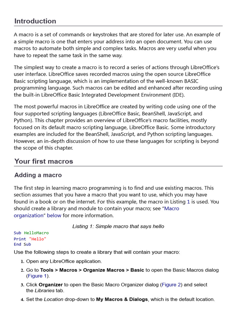 focused on its default macro scripting language, LibreOffice Basic. Some introductory