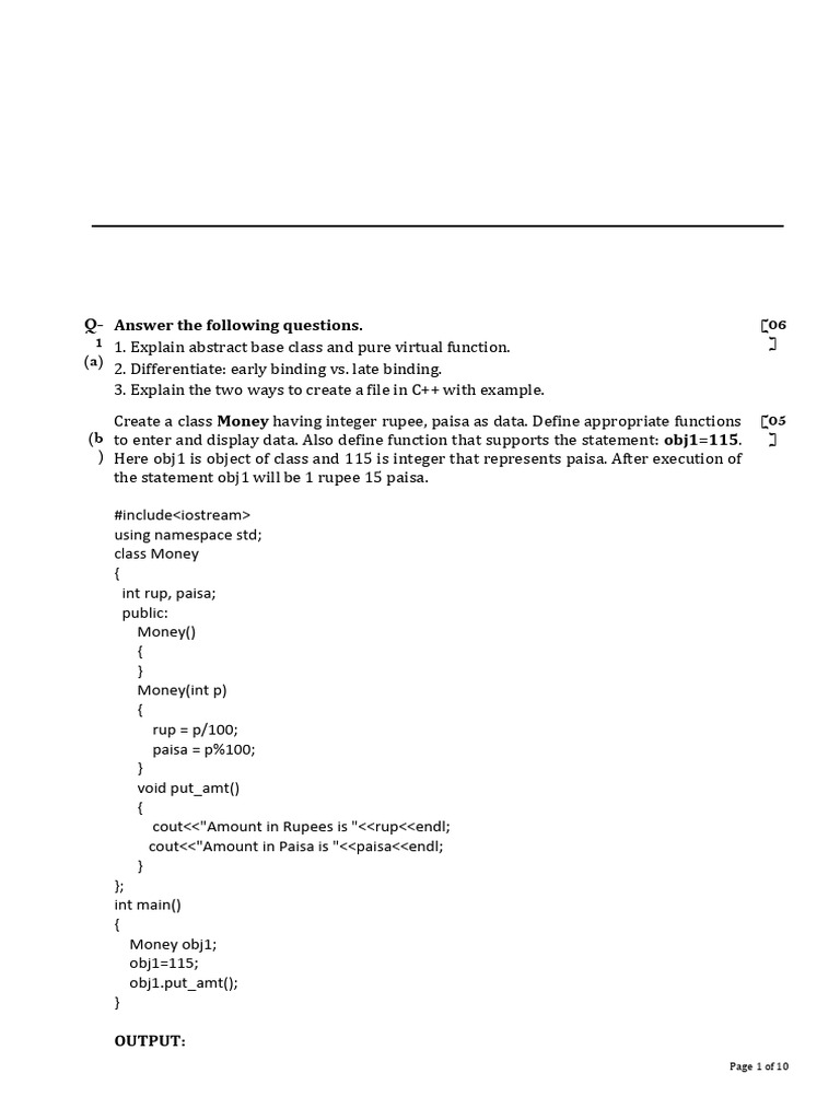 ) Here obj1 is object of class and 115 is integer that represents paisa. After execution of