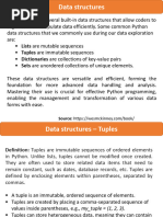 - Tuples are ordered, immutable sequences of elements. They cannot be modified after