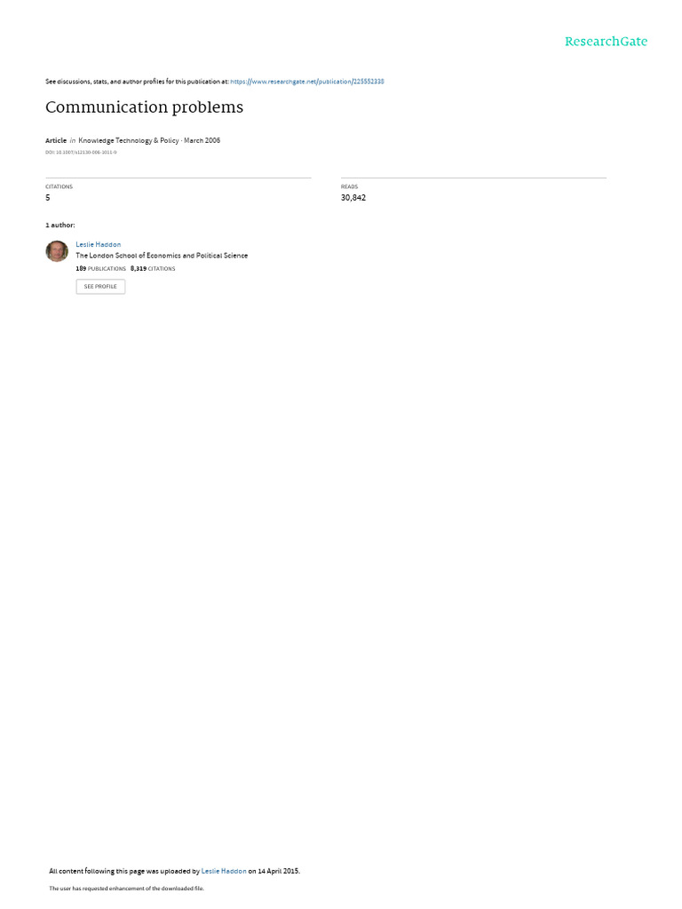 Haddon, L. (2005) ‘Communications Problems’, in Glotz, P., Bertschi, S. and Locke,