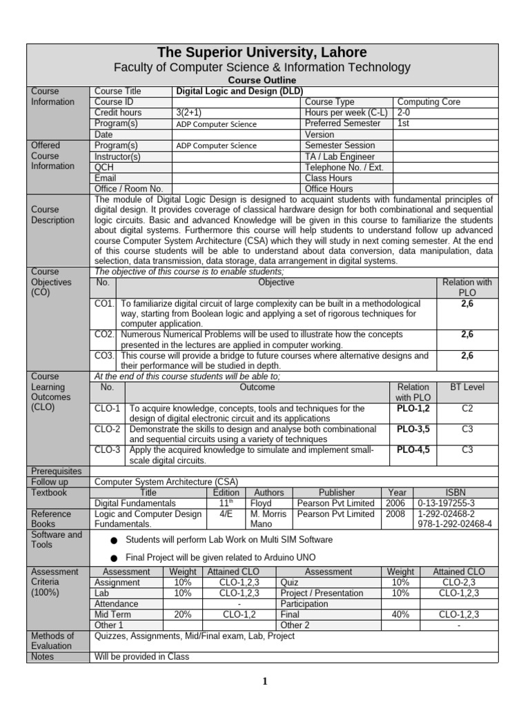 Course Course Title Digital Logic and Design (DLD)