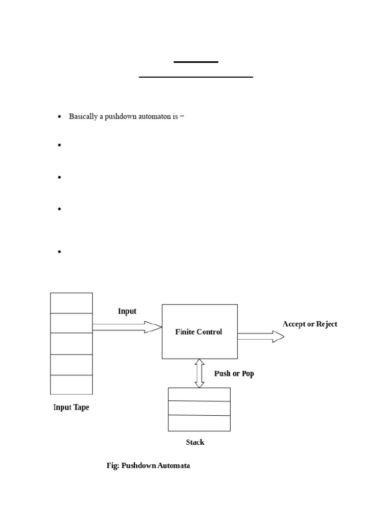 • Pushdown automata is simply an NFA augmented with an "external stack memory". The