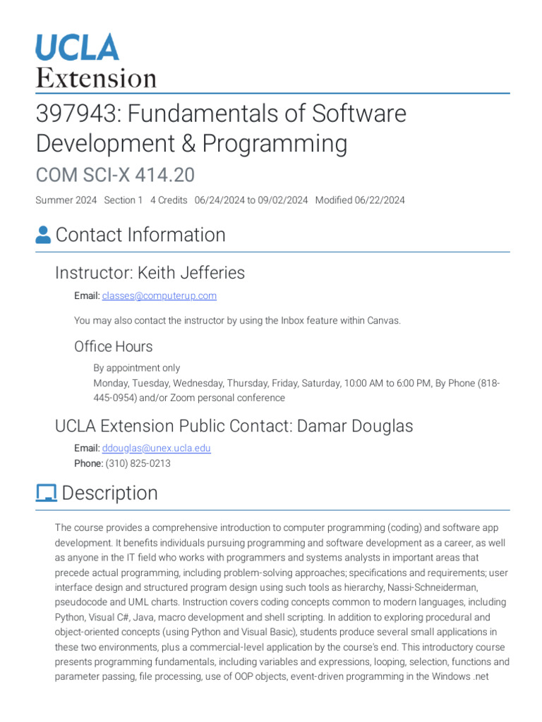 Fundamentals of Software Development Programming COM SCI X 414.20 Summer 2024